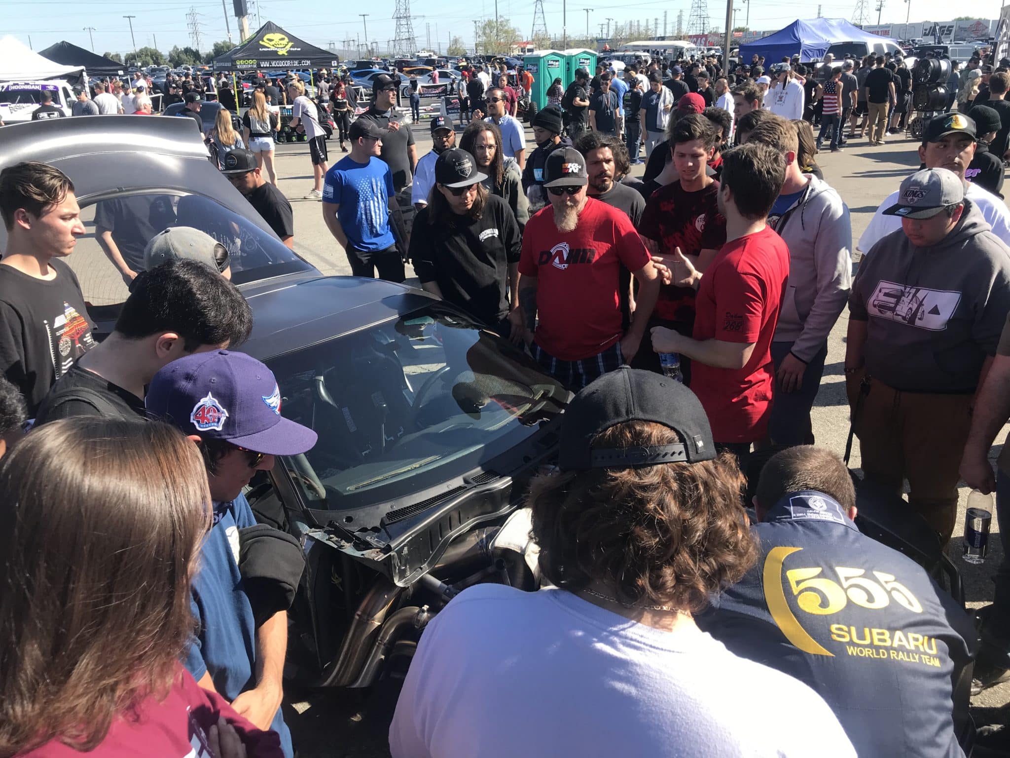 We have been big fans of Rob Dahm and his YouTube channel since 2016 when he was our SEMA booth feature vehicle. SEMA is the largest automotive tradeshow in the world with 2,400 vendors and over 160,000 attendees and media. It’s the one place to go if you want to make a product announcement, or release a feature build. Rob had been working on his AWD all-wheel drive 4 rotor Mazda RX7 and had finished the suspension based off Ken Block’s Hoonicorn, a custom elongated fiberglass wide body, and had the engine block mounted with a big Garrett GTX5533R fabricated to a manifold. It was not a running car at the time but it was a crowd pleaser.