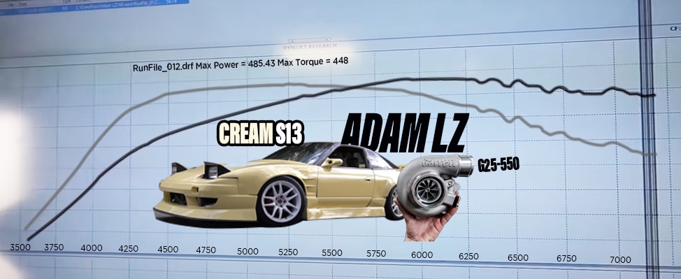 The Nissan SR20DET engine is a 2.0L 4 cylinder platform paired with a Garrett G25-550 turbocharger. The SR20DET was turbocharged from the factory and is easy to find parts for, while also being easy to work on. Being turbocharged from the factory makes the SR20DET engine easy to increase power by swapping the turbo thanks in part to so many kits out there for these cars it is one of the most popular engine platforms for drift and fun havers alike. The most recent iteration of Adam LZ’s SR20 is now reinforced with forged internals allowing him and the car to really push the limits of the setup.
