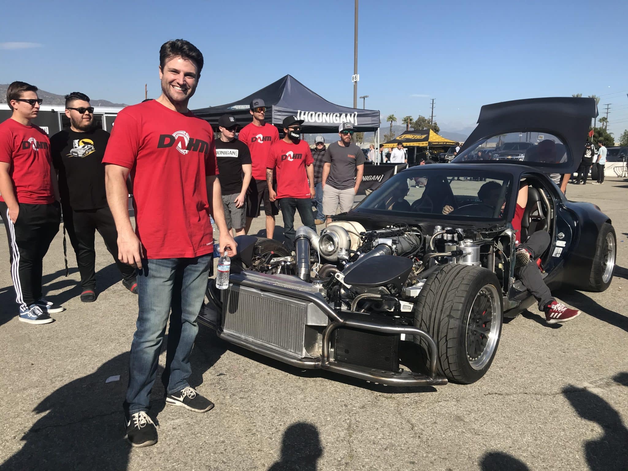 Rob was all smiles at the recent Hoonigan Burnyard Bash where is showed off the RX7 to the southern california crowd.