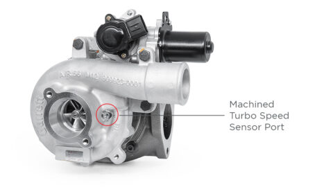 • Fully machined speed sensor port to monitor turbo shaft speed: use PN 923586-0002 (G-Smart Bluetooth Module / App) or Speed Sensor Kit 781328-0001 (street kit w/ gauge) or 781328-0002 (pro kit w/o gauge)