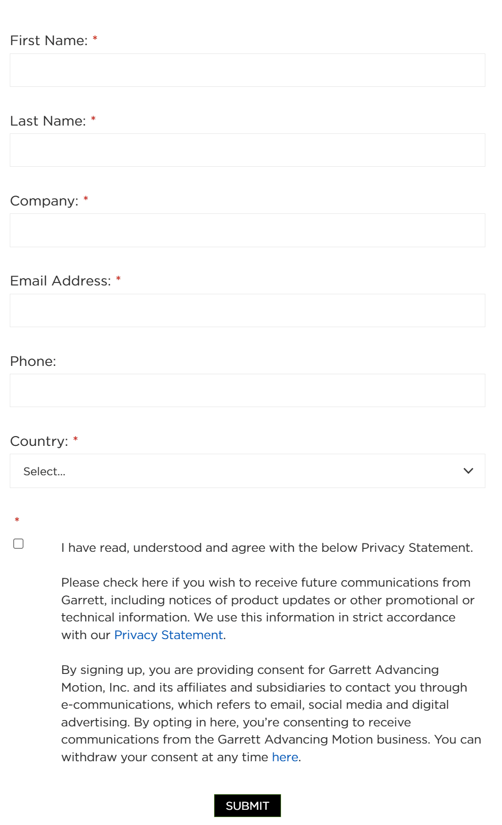 By providing your email address, you will be unsubscribed from all marketing communications* from Garrett Motion Inc. and its affiliates and subsidiaries.
