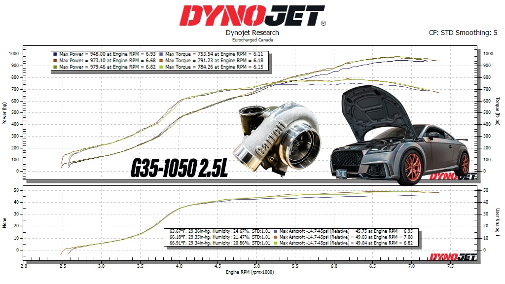 When you make a statement like 8theV8 you better be ready to back it up and this Audi TT RS coupe does just that. This all wheel drive sleeper is aiming for low 9 second ¼ miles at 160 MPH+ all while being daily driven on 94 octane/E85! What’s interesting is this car has a 5 cylinder 2.5L engine that cranks out 979 wheel horsepower with a single 68mm turbo thanks to the new G Series G35-1050! (Insert mind-blown emoji)