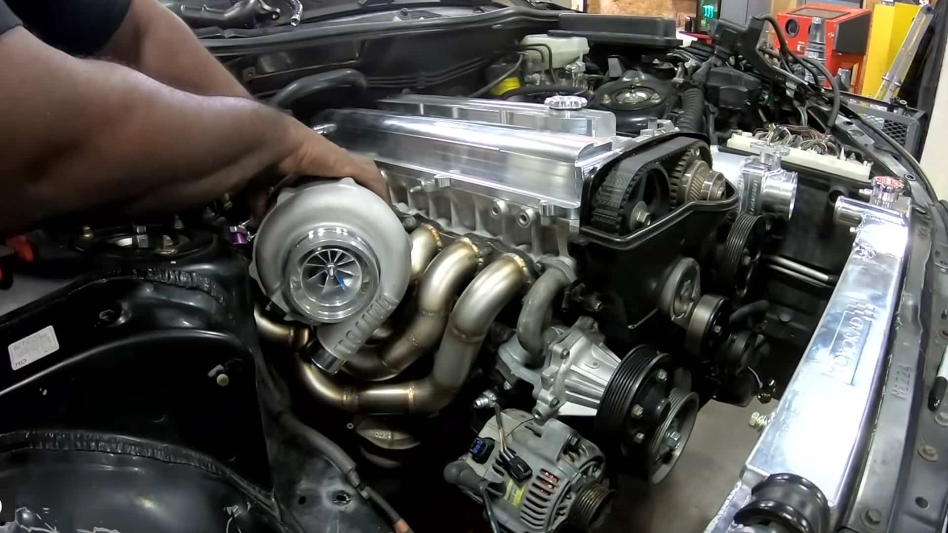 Soon, the family-friendly car was headed down a different path: a full-on, 700+ horsepower change of course centered around a twin turbo Toyota Aristo 2JZ-GTE engine swap instead. The bullet had been imported directly from Japan and came with about 220,000 miles on it, so Hert gave it a quick freshen up to remove the gunk and free up some horsepower.