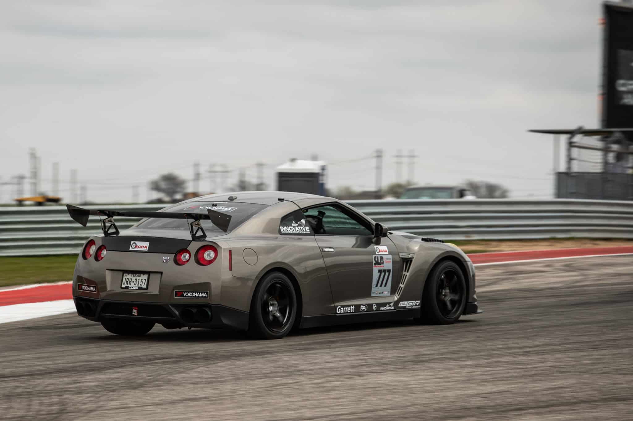 As Mcginnis rushed to get the GT-R ready for Super Lap Battle at Circuit of the Americas, he compared the Boostlogic stock location turbo kit with Garrett G30-900 to the stock baseline. The results were impressive with the Boostlogic setup outpacing the stock setup at 2500 RPM which is remarkable for something that produces 3x the power. The boost was tamed in the 4000-6000 RPM range for optimum performance in the technical sections while ramping up the boost for straightaways up to 8000 RPM.