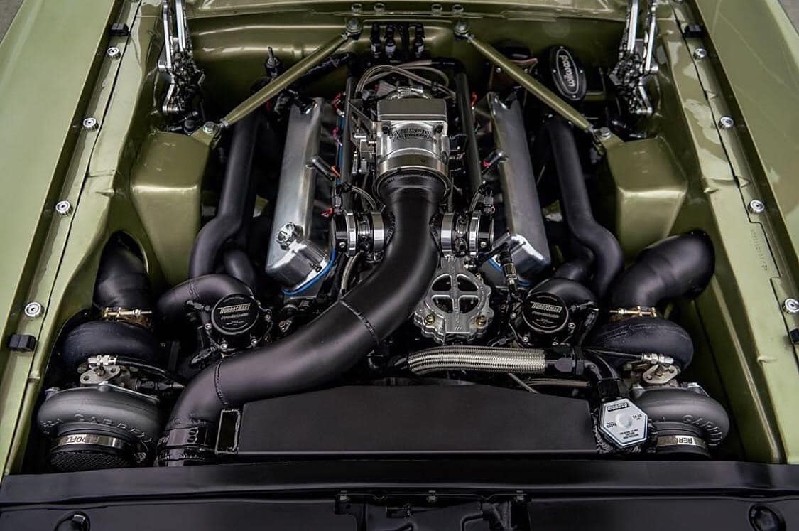 Mean, clean, and green is a great way to describe this Australian based 1965 Ford Mustang Fastback. The 1359 wheel horsepower steed features a Dandy Engines 417 cubic inch Windsor small block with twin GTW3884R 67mm compressor turbos. 3.50 gears stuffed into a 9” rear end and a turbo 400 trans put the power to the ground on this beauty. Streetbuilt Racing and Frank Marchese in Australia took the reins and dialed in the fuel management for this hot rod. Like and Follow for the best builds down under.