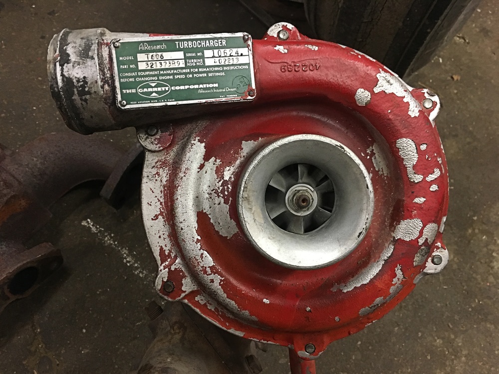 Why would Garrett offer these configurations? In early times, customers had packaging requirements that required the compressor outlet to be on the left side and the solution was to engineer a reverse rotation turbo. After all, Garrett is an engineering company with expertise in turbo technology and we engineer and manufacture boosting solutions for customers around the world. The turbo in the image below (T606) was manufactured in 1958 under the Garrett AiResearch nameplate and is one of the early reverse rotation products.