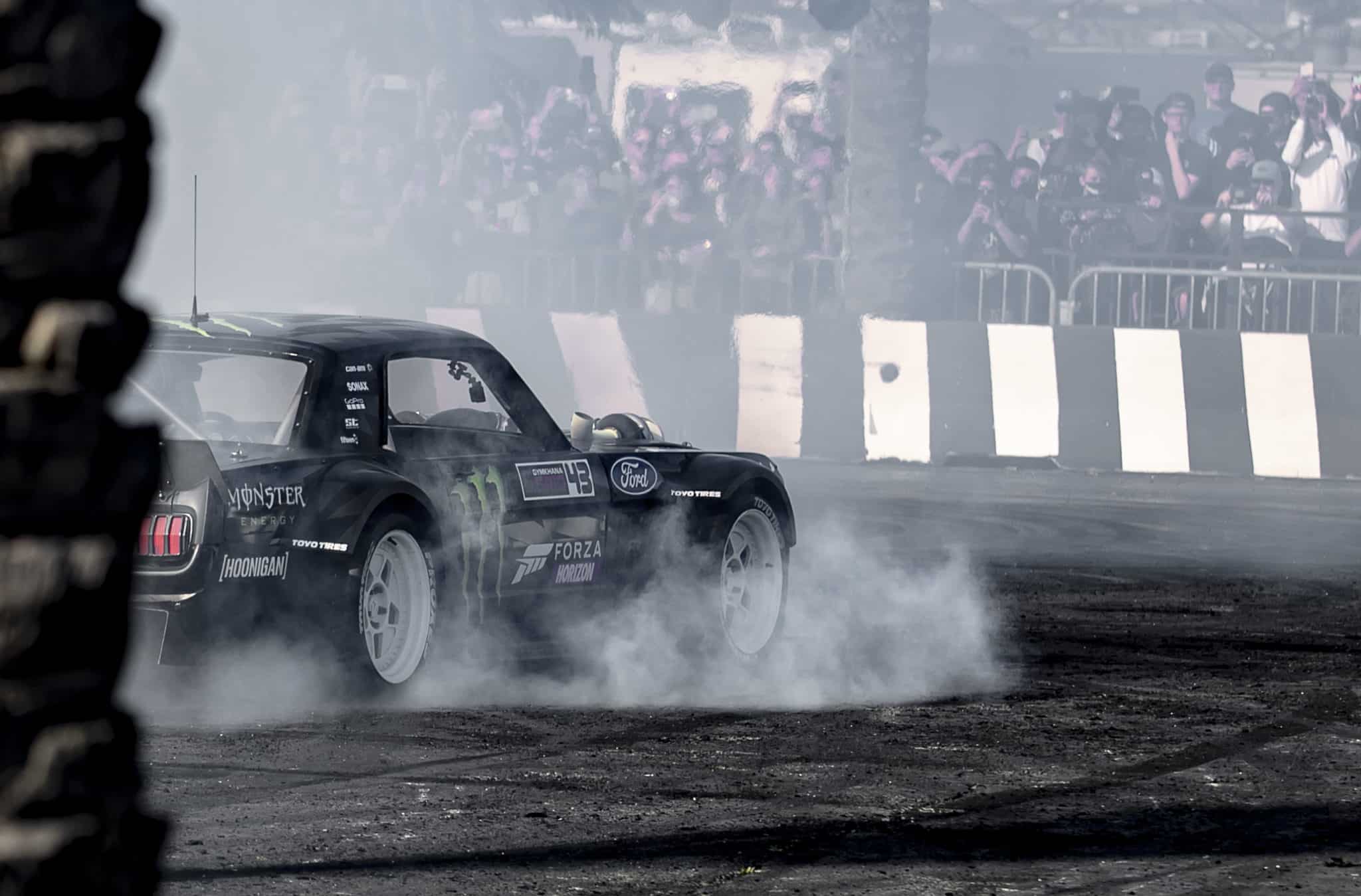 Ken Block’s Hoonicorn is a 1965 Ford Mustang with 1,400 horsepower and all wheel drive and this car rips! You’ve seen it in Gymkhana Ten, Gymkhana Pikes Peak and you can even play it on Forza Horizon 3 for Xbox. The crew at Hoonigan recently held an event called Burnyard Bash at the Irwindale Speedway in California. It was a car and truck show, with a big vendor midway, a $5,000 burnout competition for spectators, and a surprise burnyard shred session by the King of Burn, Ken Block himself.