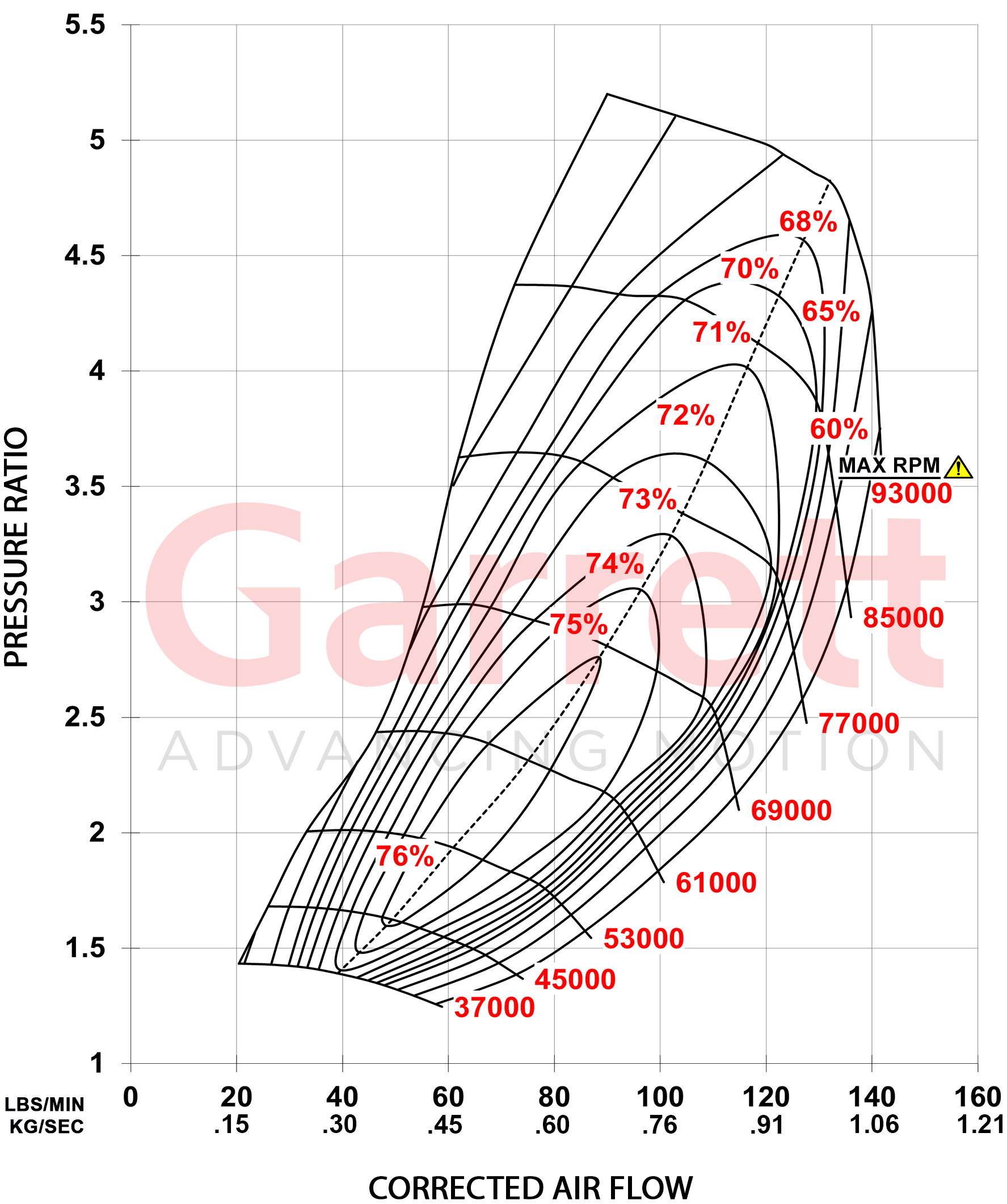 WARNING: Maximum allowable turbocharger speed is 93 krpm. The use of this product above max turbocharger speed is at the owner’s risk, and can result in damage and premature failure. To protect the turbocharger from overspeed when operating, a speed sensor can be installed into the compressor housing to monitor shaft speed. Sensors sold separately. (click here for details)