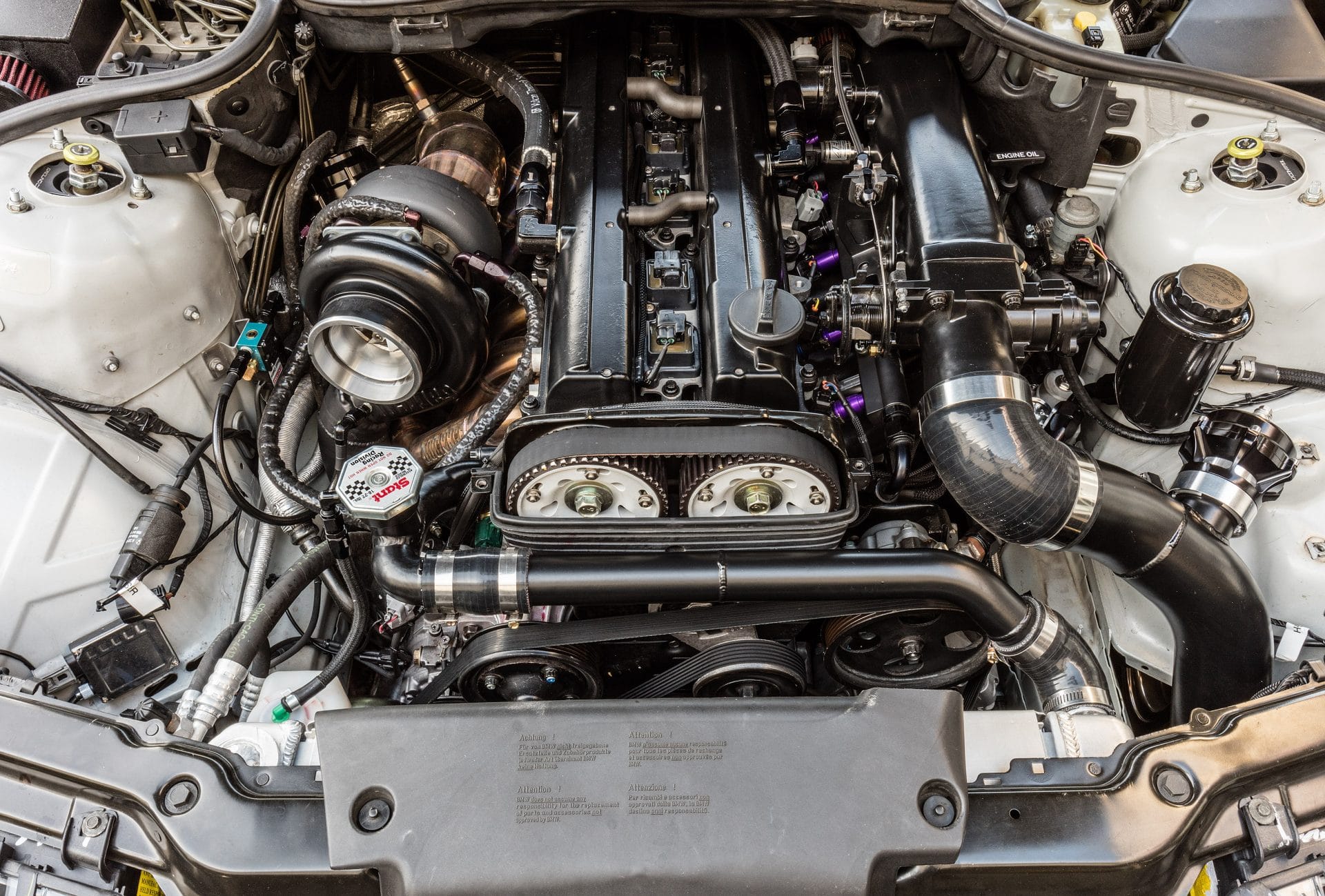 Skilled craftsmen, Lawrence Shipman, Jason Ford, and Scott Birdsall of Chuckles Garage in Santa Rosa, California were the men to make this vision a reality. The first step was to pluck the factory BMW M52 inline 6-cylinder engine from its home to make way for a more capable 6-cylinder solution. With forced induction a must and big horsepower a given, the team agreed that Toyota’s legendary turbocharged 3.0-liter 2JZ-GTE engine was the right choice for the job. Sporting a cast iron block and 86mm bore and stroke, the 2JZ-GTE offered much greater performance potential than the factory engine.