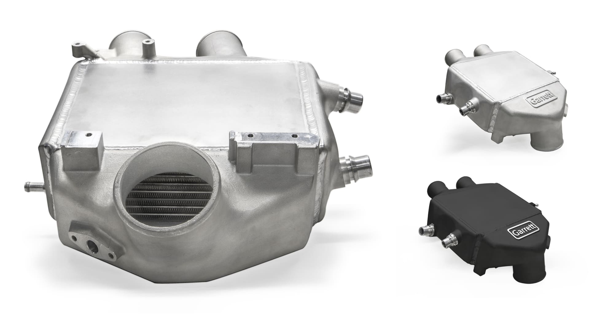Garrett Powermax™ direct fit performance charge air cooler for the 2015+ BMW M3 and M4 is engineered with a 47% larger core than stock. The dual pass air-to-water design helps reduce intake manifold temperatures by an average of 10 °F. CFD optimized end tanks improve air flow through the core. Back to back dyno testing at the Weistech facility resulted in an average increase of 12.4 horsepower and 4.9 lb-ft of torque were measured during back to back dyno pulls. This direct fit performance intercooler installs in 1.5 hours and reuses the stock bolts, hoses, and clamps. Available now in black finish, and in Q1 2020 the aluminum finish.