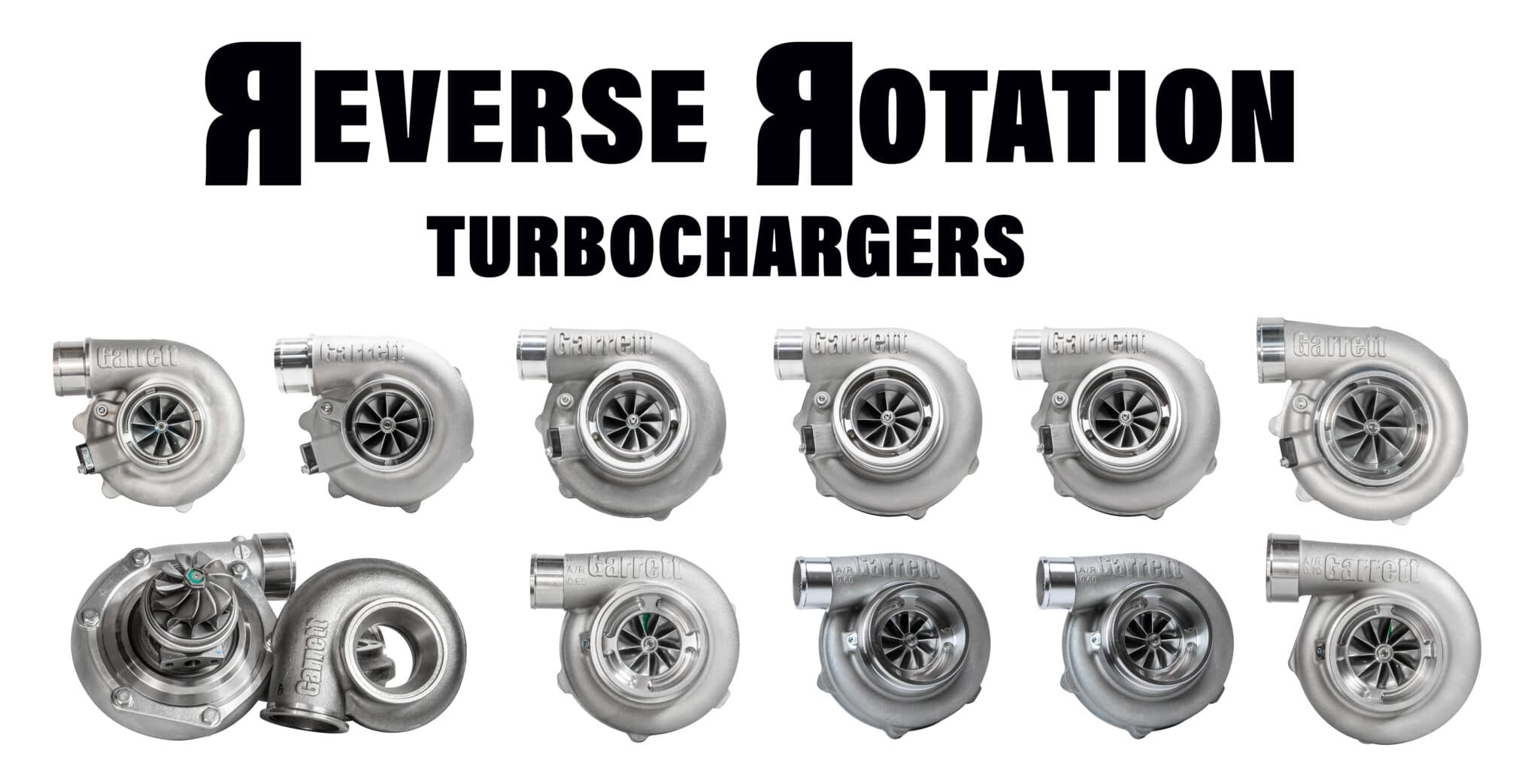 Reverse rotation, mirrored turbos, symmetrical turbos, mirror image turbos are the many names that identify this counter clockwise rotating turbo configuration. Truth be told, there’s nothing uber special about them when compared to their standard rotation counterparts. However, the only parts they share are the bearing cartridge and some bolts and clamps. Today we will look at the reverse rotation product line from Garrett and see what sizes and specs are available as well as give you some insight into the different application types that use these products.